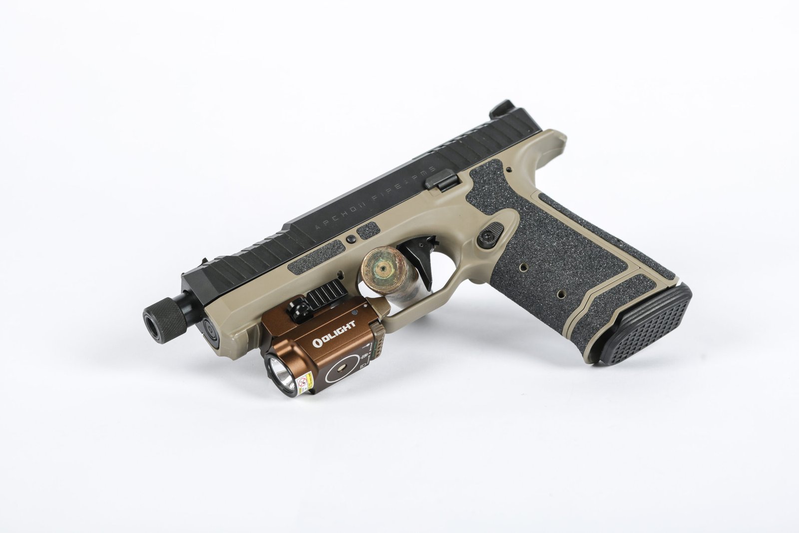 The Archon Firearms Type B Threaded Barrel pistol is a striker-fired, polymer handgun engineered for control, versatility, and modern shooting needs. Designed with the innovative AF-Speedlock® system, it delivers smooth operation and excellent handling. The threaded barrel configuration adds suppressor and muzzle device compatibility, while the tan finish gives it a distinctive, professional appearance suited for range, duty, or tactical use.