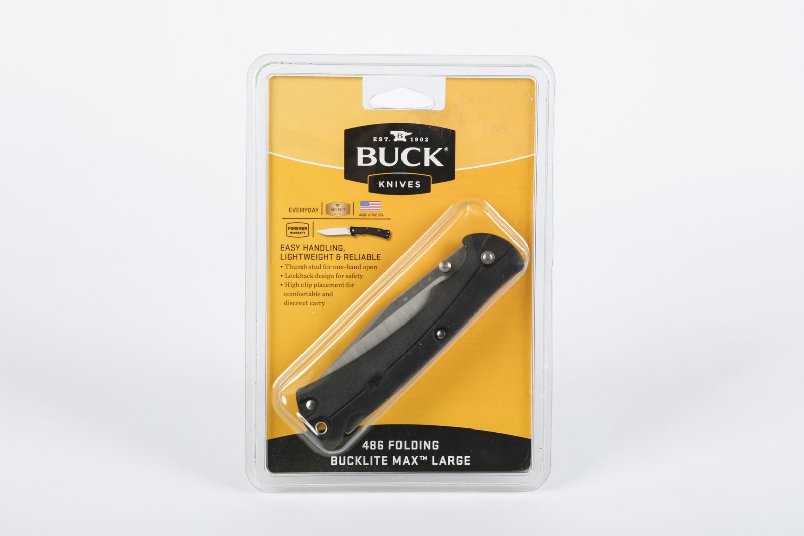The Buck 486 Bucklite MAX Large Folding Knife is a rugged and reliable large EDC blade featuring Buck’s trusted craftsmanship, a secure locking mechanism, and durable construction — ideal for everyday tasks, outdoor use, and utility needs.
